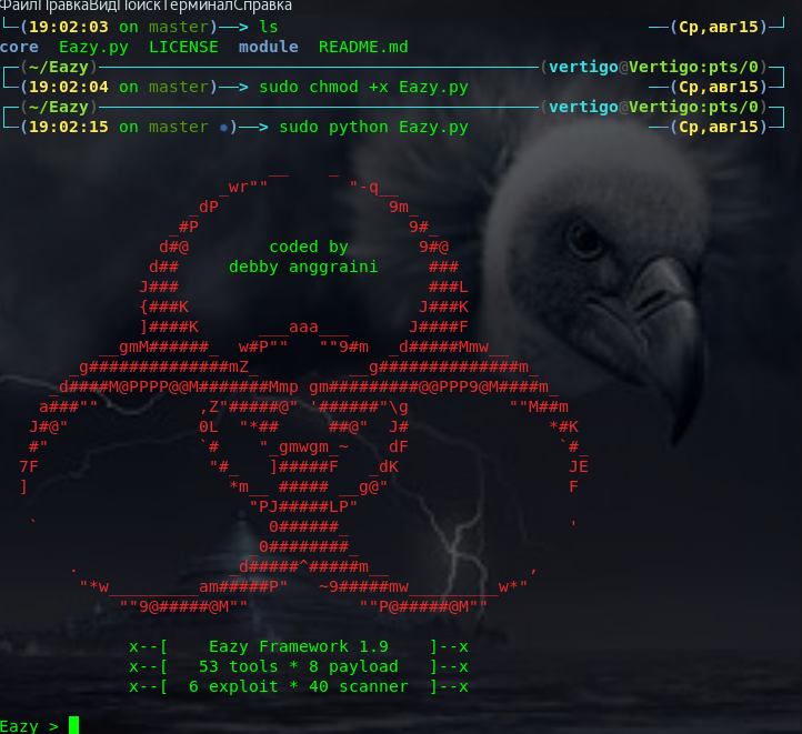 # chmod +x Eazy.py , а вот след.команда для Termux : # chmod 777 Eazy.py