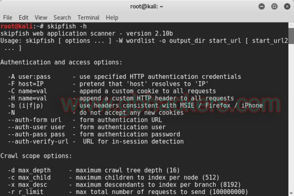 Skipfish - активный инструмент рекогносцировки безопасности веб-приложений. Он подготавливает интерактивную карту сайта для целевого сайта, проводя рекурсивные поисковые сканеры и зондирование по принципу подбора по словарю.