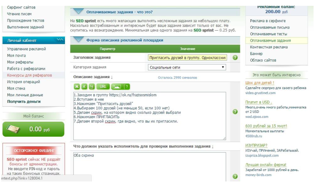 Я говорю о таких сервисах, как wmmail , seosprint, forumok. На них мы можем разместить следующее задание: