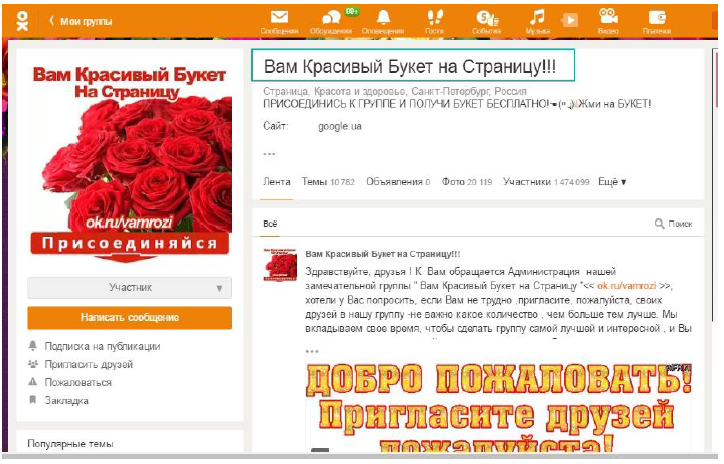 Группу мы будем создавать с направленностью: бесплатные подарки, бесплатные ок, бесплатный букет на страницу. Вот пример: