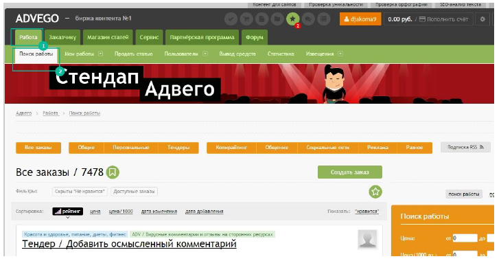 Если мы зайдем в раздел ПОИСК РАБОТЫ, то увидим много легкой работенки там: