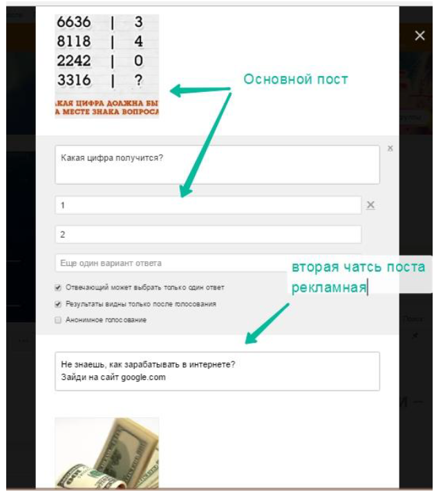 Люди участвую в опросе, нажимают Классы, комментируют запись (ведь они хотят показаться умными), таким образом они и распространяют нашу рекламную запись. Ведь в ленте показывается именно 1 часть поста, а вторая часть показывается, когда мы открываем полностью пост.